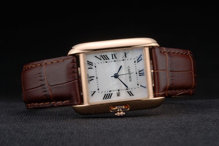 Bracelet de acero inoxidable: el calor correa de piel de cocodrilo marrón en relieve Cartier rosa de 18 quilates chapado en oro plegable en cierre de hebilla