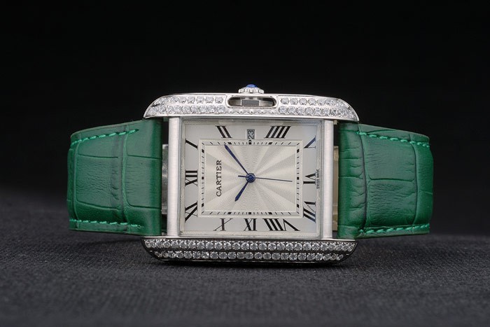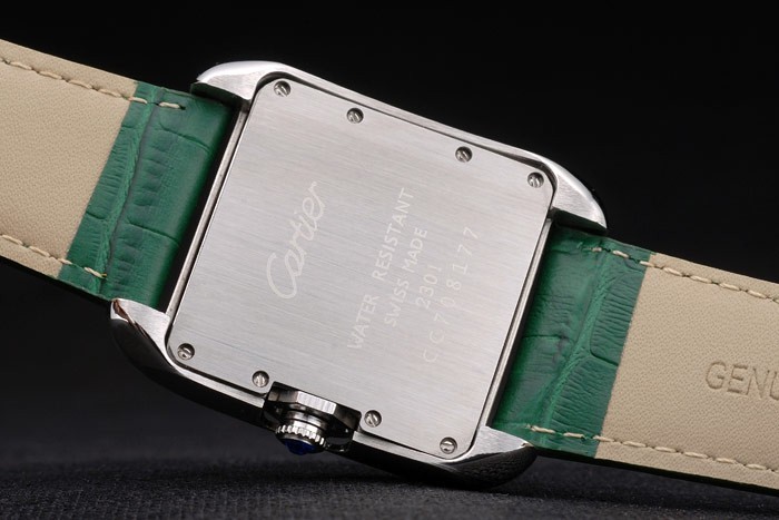 Bracelet de acero inoxidable: el calor Cartier en relieve correa de piel de cocodrilo verde con acero inoxidable pulido plegable en cierre de hebilla