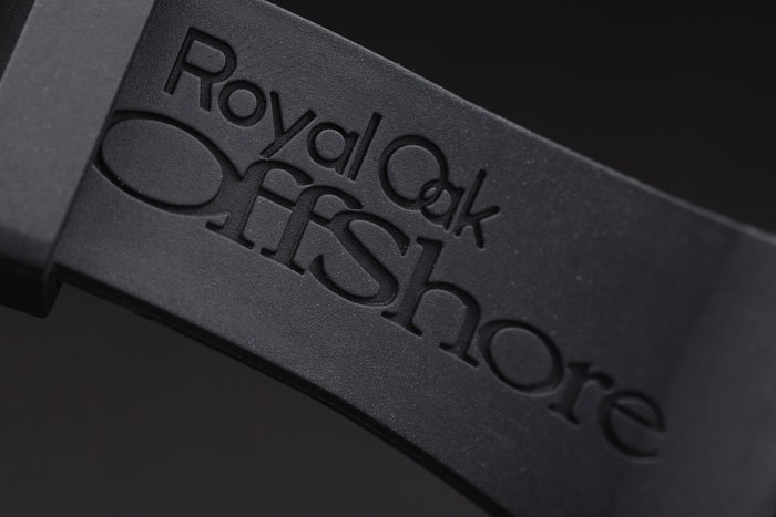 Bracelet de acero inoxidable: Audemars Piguet Royal Oak Offshore repujado correa de caucho negro con Audemars Piguet grabado ion-plateado plegable en clasp