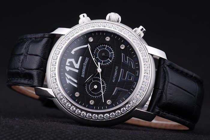 Bracelet: correa de piel de cocodrilo Negro con relieve de calor nombre y el logotipo de Audemars Piguet y un Audemars Piguet inscrito acero inoxidable flip-sobre el gancho clasp