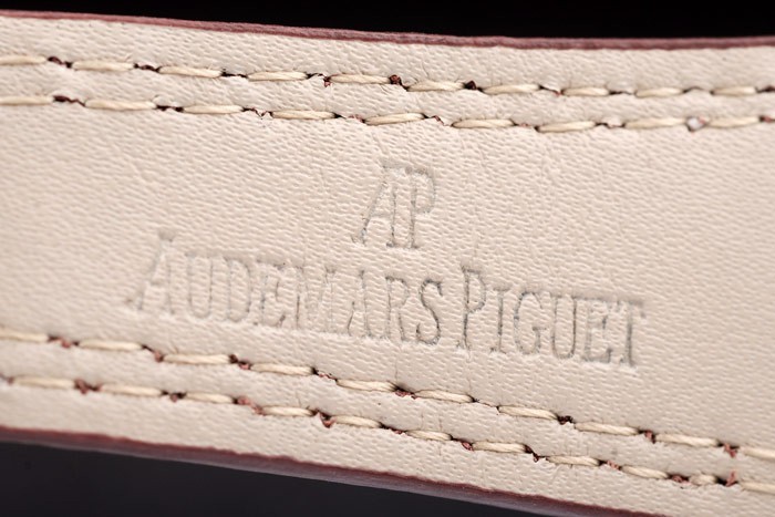 Bracelet de acero inoxidable: El calor en relieve correa de piel de cocodrilo marrón Audemars Piguet con doble costura blanco y Audemars Piguet grabado inoxidable plegable de acero clasp