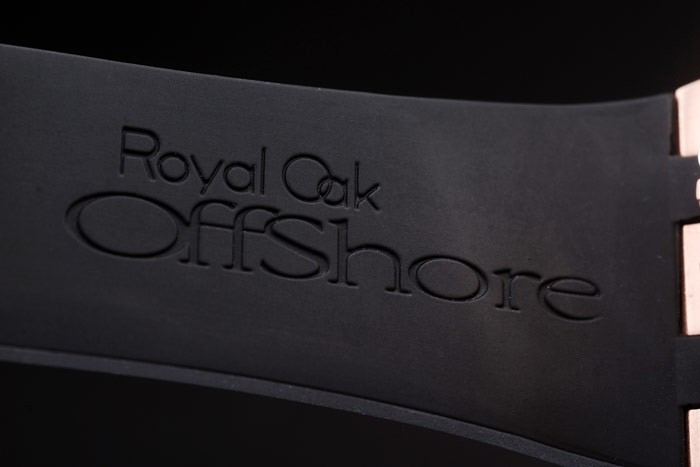 Bracelet: Audemars Piguet Royal Oak Offshore repujado correa de caucho negro con relojes Piguet grabado de oro rosa pliegue en clasp