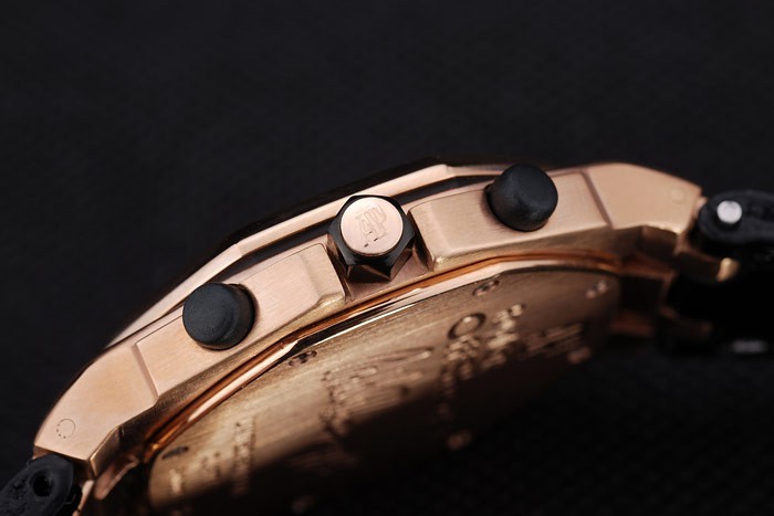 Crown: Rose-chapado en oro logotipo de Audemars Piguet grabado corona cutwork ion-plateado con dos pequeñas coronas de iones de chapado a ambos lados de it
