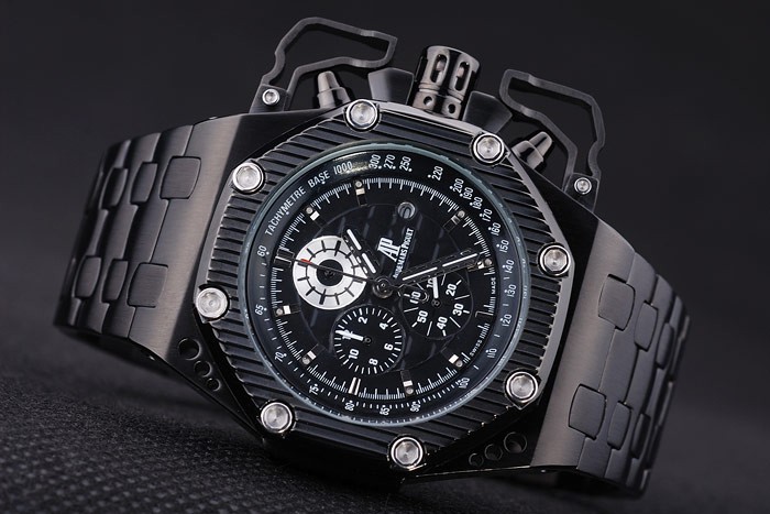 Crown: logotipo de la corona de ion-plateado encerrado grabado Audemars Piguet con dos pulsador pequeña protegida coronas a ambos lados de it