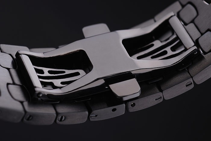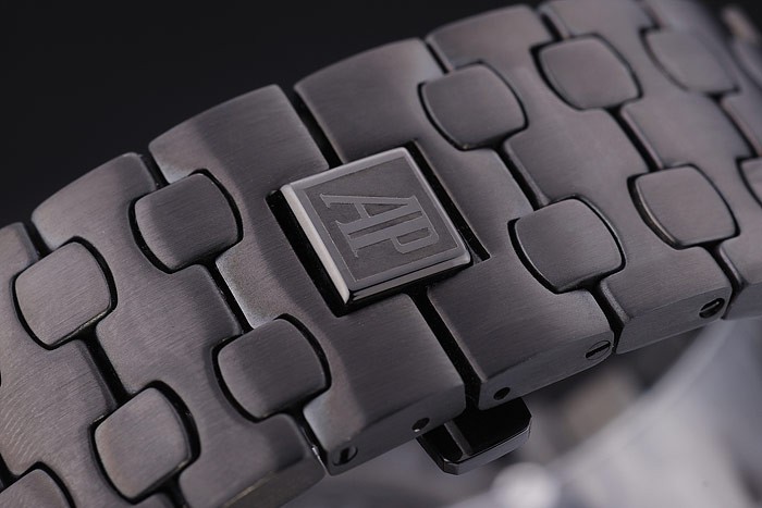 Bracelet de acero inoxidable: acero inoxidable enchapado en ion pulsera de enlace con el logotipo de Audemars Piguet inscrito pequeño pliegue -más de empuje de liberación clasp