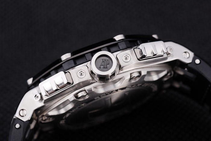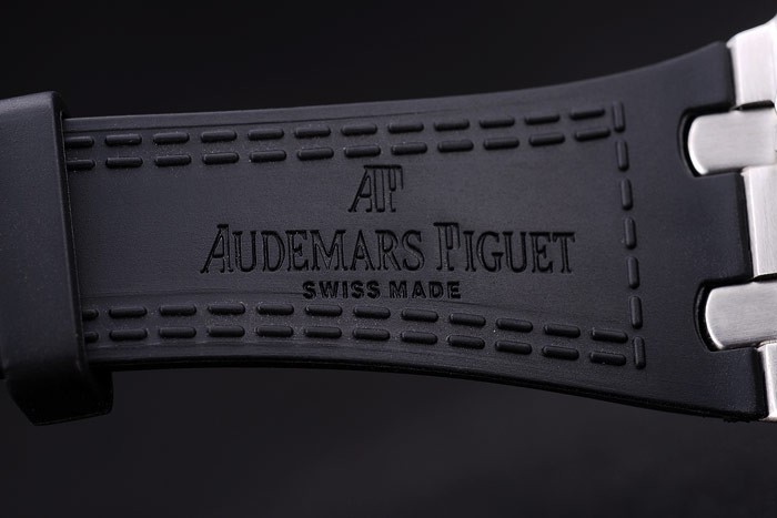 Bracelet de acero inoxidable: El calor en relieve Audemars Piguet Swiss Made logotipo y correa de caucho negro con Audemars Piguet grabado inoxidable acero gancho hebilla clasp