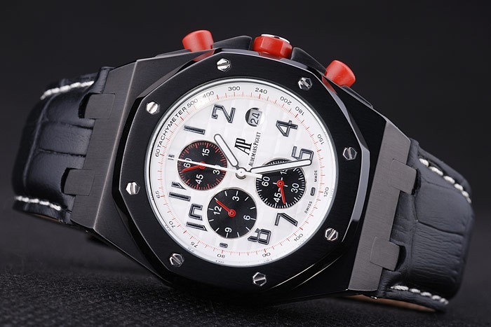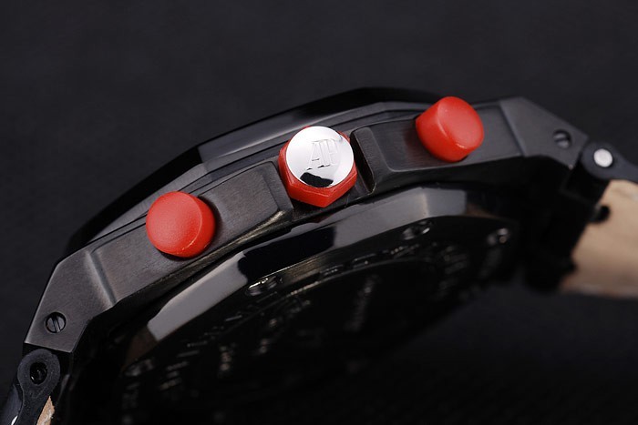 Crown: acero inoxidable logotipo de Audemars Piguet grabado esmalte rojo calado corona con dos coronas más pequeñas a cada lado de it