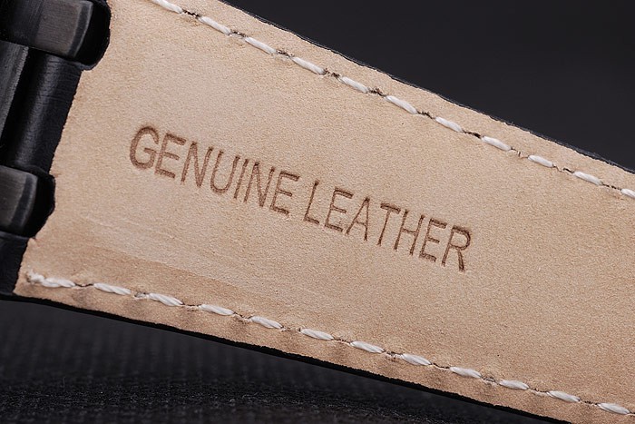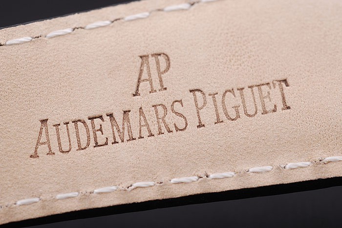 Bracelet de acero inoxidable: correa de piel de cocodrilo Negro con costuras en hilo blanco y en relieve de calor nombre de Audemars Piguet y el logotipo y un Audemars Piguet inscriben ion-plateado flip-sobre el gancho clasp