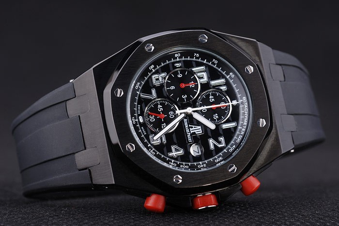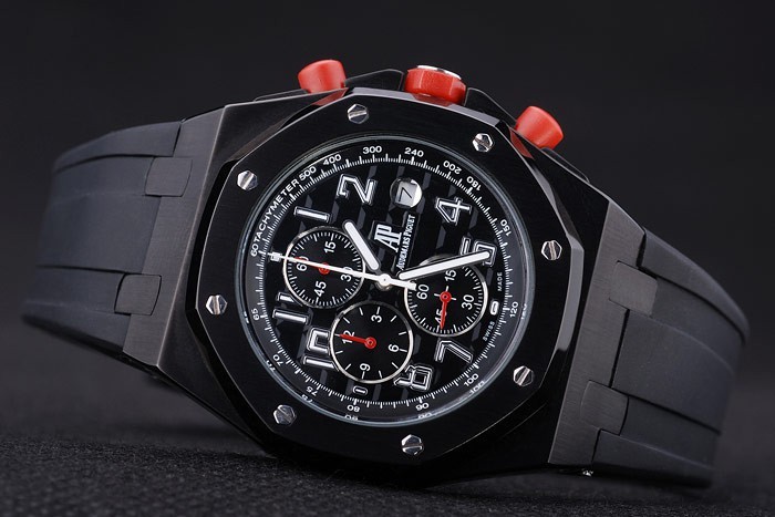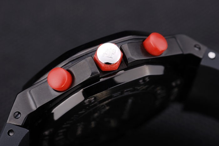 Crown: acero inoxidable logotipo de Audemars Piguet grabado esmalte rojo calado corona con dos coronas más pequeñas a cada lado de it