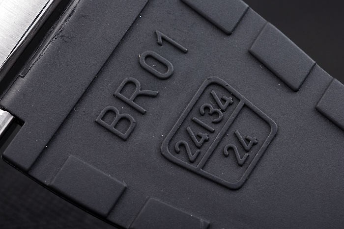 Bracelet: correa de caucho Negro con el logotipo en relieve de calor, el número de modelo y el código de producto y BR grabado acero inoxidable cepillado de gancho hebilla de cierre de