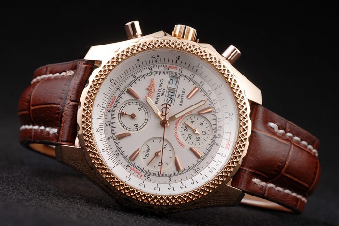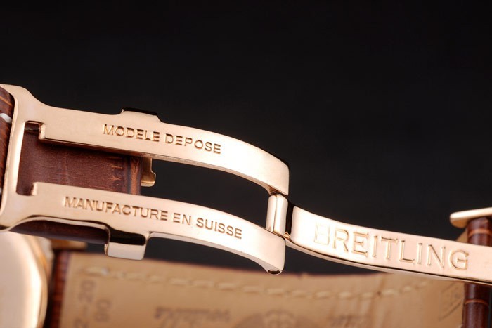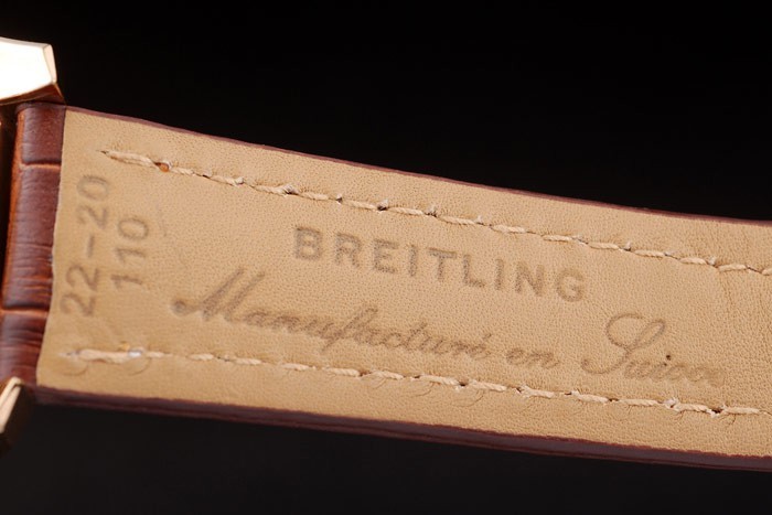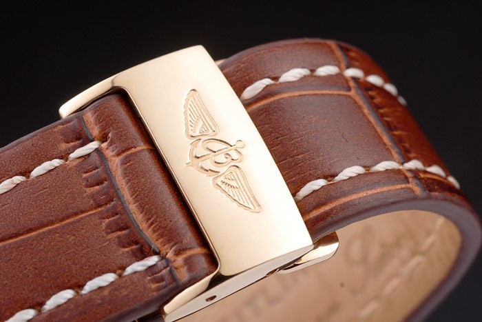 Bracelet de acero inoxidable: correa de piel de cocodrilo de Brown con la patente costuras de color blanco y el calor en relieve grabados Breitling y grabado 18k oro amarillo plateado doblar por la hebilla con el logo de Breitling en top