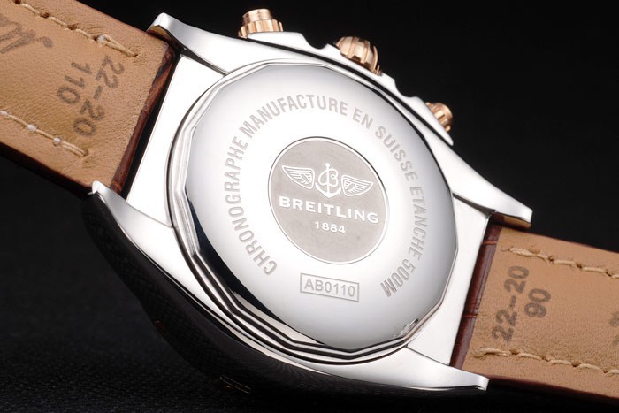 Crown: rosa de 18 quilates chapado en oro de la corona calado de acero inoxidable con el logotipo de Breitling y dos coronas más pequeñas a cada lado de ella