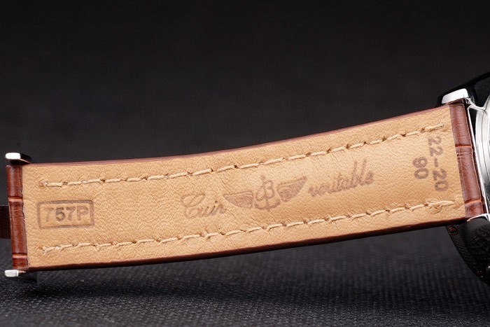 Bracelet de acero inoxidable: correa de piel de cocodrilo de Brown con la patente costuras de color blanco y el calor en relieve grabados Breitling y acero inoxidable grabado pliegan broche con el logotipo de Breitling en top