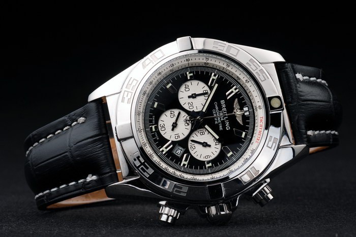 Bracelet de acero inoxidable: Breitling estampada correa de cuero negro con hebilla de gancho lock