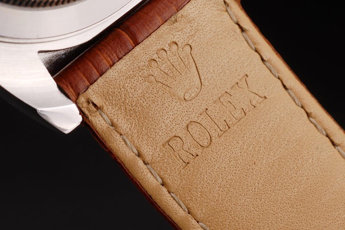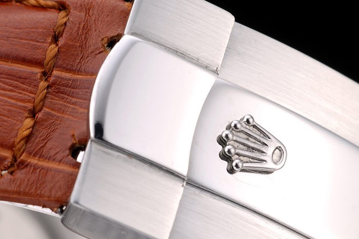 Bracelet de acero inoxidable: Correa Rolex de calor en relieve de cocodrilo marrón de cuero con grabado cierre desplegable de acero inoxidable con el logotipo de Rolex en top