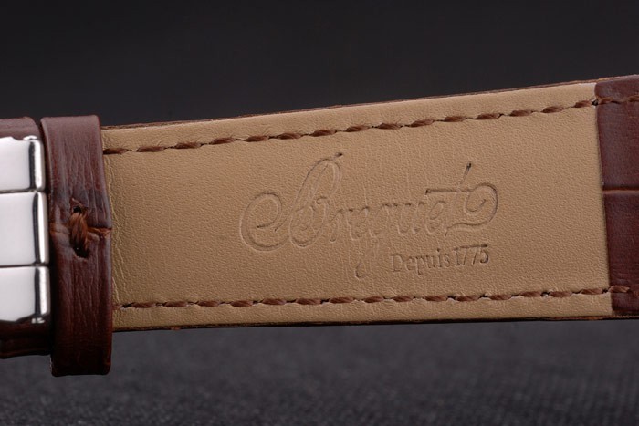 Bracelet de acero inoxidable: Correa de relojes de calor en relieve de cocodrilo marrón de cuero con Brequet grabado de acero inoxidable pulido y plegable gancho hebilla clasp