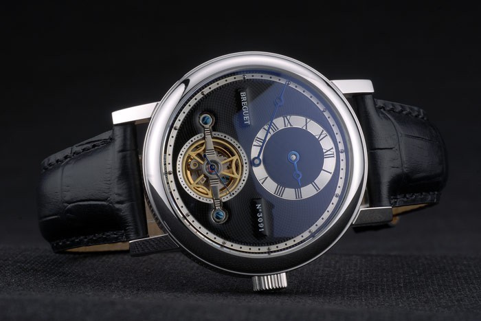Complicaciones Breguet Classique caja de acero inoxidable Negro 80158 correa de cuero