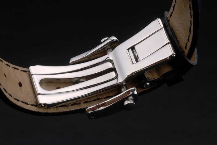 Bracelet de acero inoxidable: Correa de relojes de calor en relieve de cocodrilo negro de cuero con Brequet grabado de acero inoxidable pulido y plegable gancho hebilla clasp