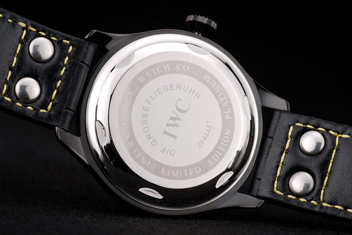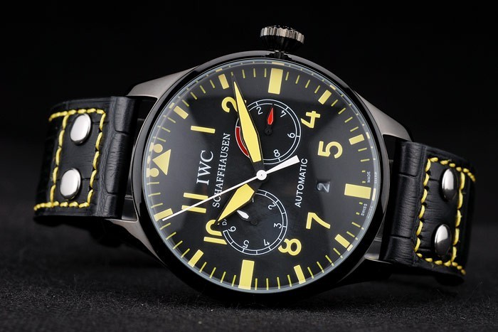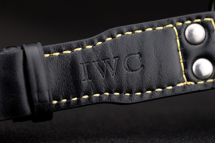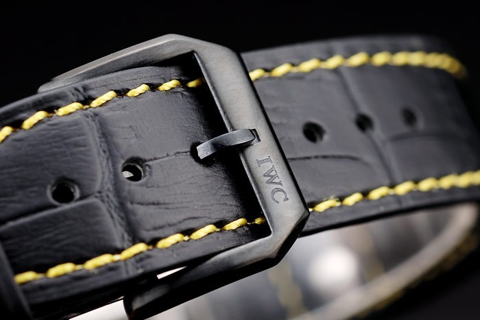 Bracelet de acero inoxidable: Correa CBI calor en relieve de cocodrilo negro de cuero con hilo de coser de color amarillo y la CBI grabado iónico plateado de acero inoxidable gancho hebilla clasp