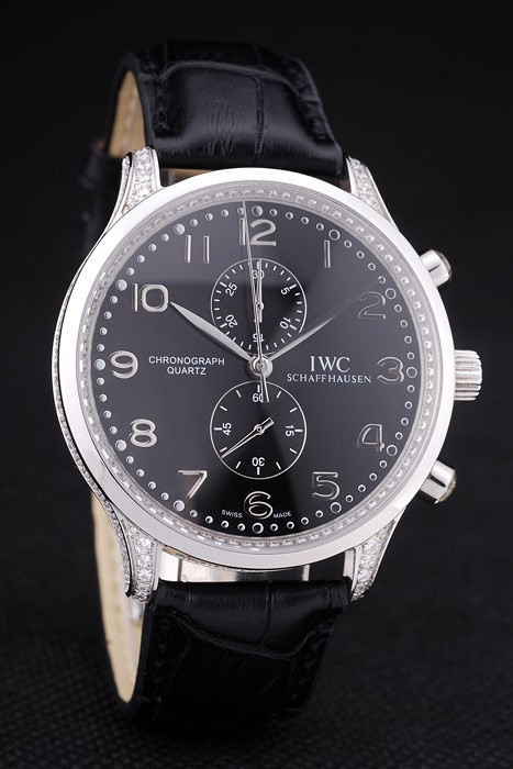 Bracelet de acero inoxidable: correa de cuero IWC Schaffhausen calor en relieve de cocodrilo negro con CBI inscrito acero inoxidable gancho hebilla clasp
