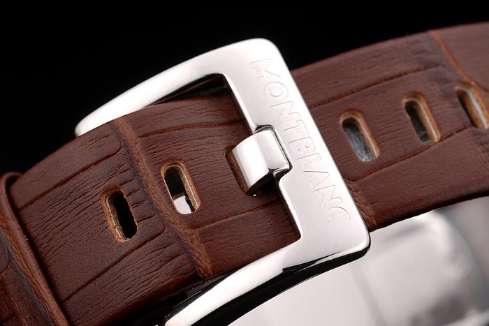 Bracelet de acero inoxidable: correa de piel de cocodrilo marrón MontBlanc calor en relieve con MontBlanc inscrito pulida de acero inoxidable gancho hebilla clasp