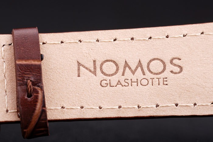 Bracelet de acero inoxidable: El calor en relieve correa de piel de cocodrilo marrón Nomos Glashütte con NOMOS gancho de acero inoxidable grabadas -buckle Longitud clasp