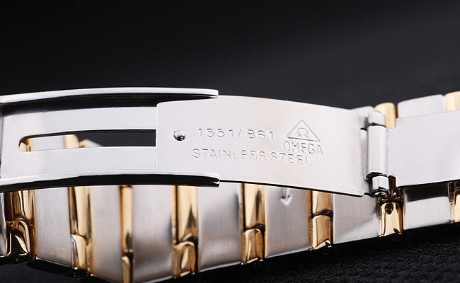 Bracelet de acero inoxidable: oro amarillo de 18 quilates chapado y se sacudió la pulsera de eslabones de acero inoxidable con Omega inscripción plegable en clasp