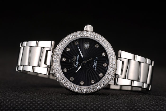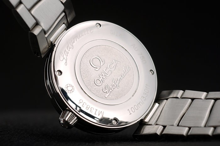 Volver: Acero inoxidable pulido atornillada de nuevo con Omega Ladymatic engraving