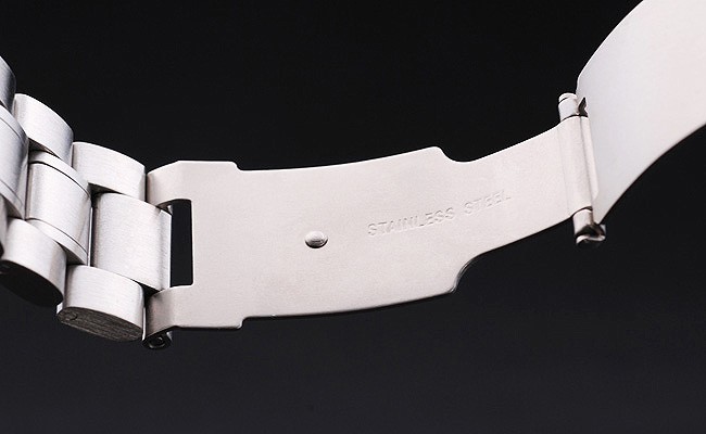 Crown: pulido corona calado de acero inoxidable con el logotipo de Omega más dos coronas adicionales, uno a cada lado de it