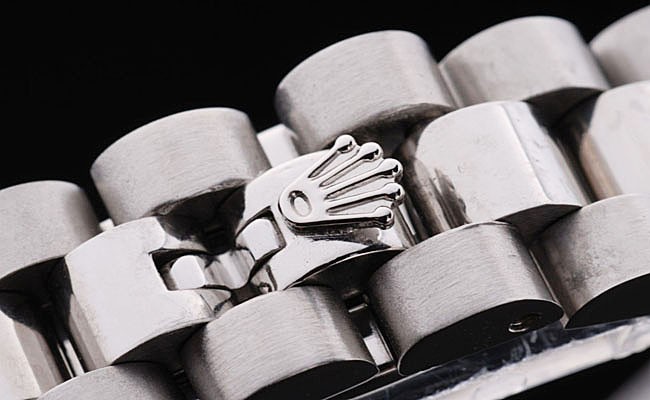 Bracelet acero inoxidable cepillado y pulsera de acero inoxidable pulido con el grabado Rolex plegable en cierre desplegable que muestra la longitud Rolex logo