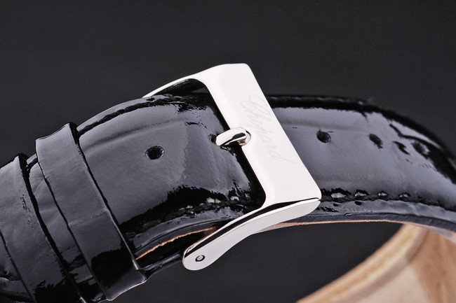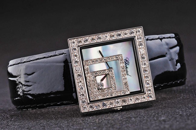 Con plazas de diamantes de imitación flotante, esta réplicas reloj Chopard es seguro que te noticedBack: Empuje en acero inoxidable de nuevo con Chopard engravings
