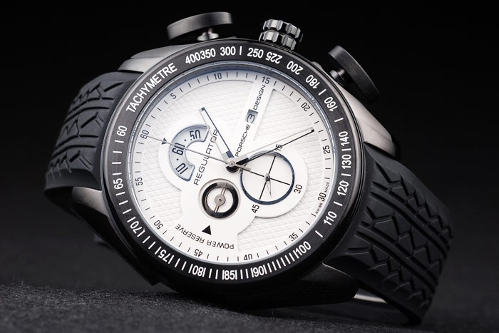 Crown: enchapado en ion corona de calado con el logotipo de Porsche y dos coronas ovaladas a ambos lados de la principal Espesor crown