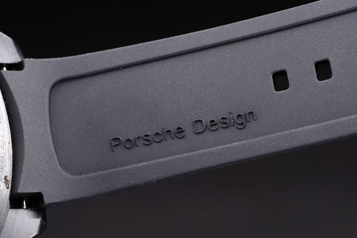 Bracelet: correa de caucho negro Tyre-ranura con el calor en relieve sello Porsche y cierre de gancho hebilla de ión-plateado con Porsche inscription