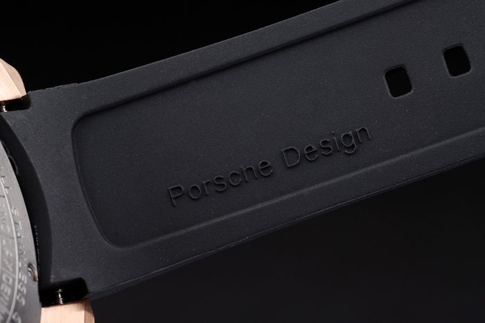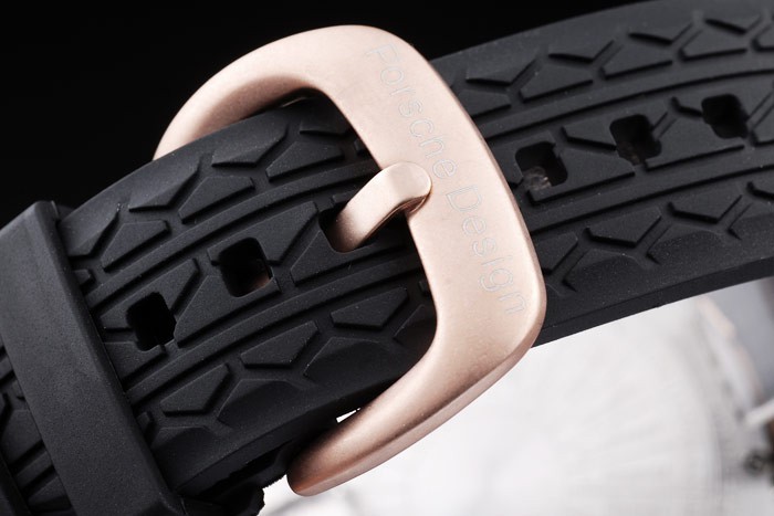 Bracelet: correa de caucho negro Tyre-ranura con el calor en relieve sello Porsche y gancho hebilla de cierre de oro rosa con Porsche inscription