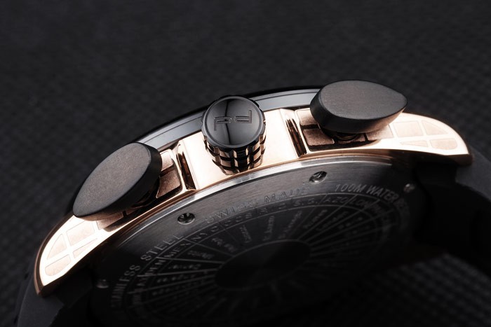 Crown: enchapado en ion corona calado con el logotipo de Porsche y dos coronas ovaladas a ambos lados de la principal Espesor crown