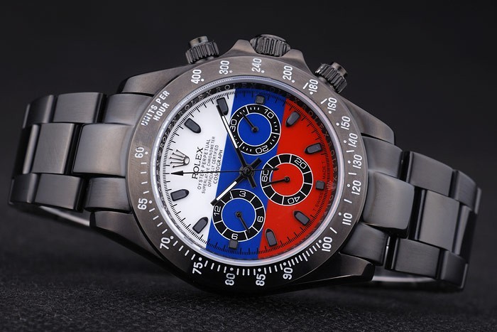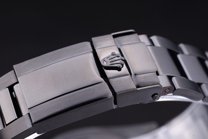 Crown de seguridad: enchapado en ion corona de calado con el logotipo de Rolex y dos coronas de pulsador más pequeño cutwork a ambos lados de it