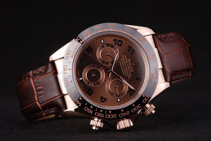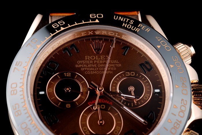 Crown: 18k de oro rosa-cutwork corona con logotipo de Rolex y dos coronas de pulsador cutwork más pequeños a cada lado de it