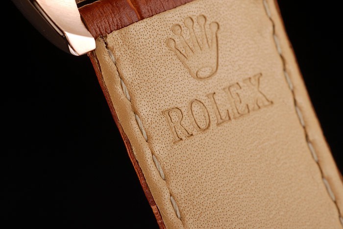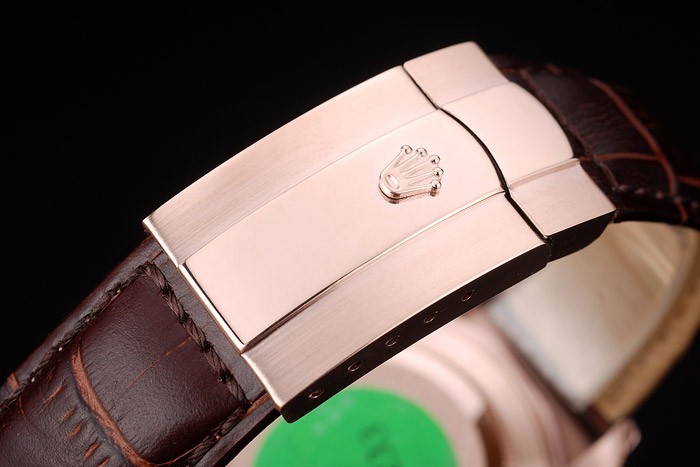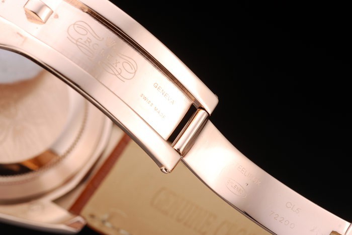 Bracelet: correa de piel de cocodrilo marrón en relieve de calor Rolex con grabado cierre desplegable en oro rosa con Rolex logotipo en top