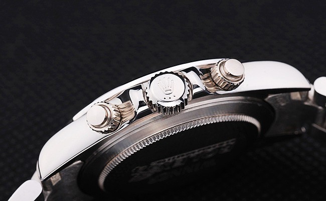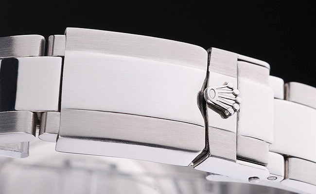 Crown: acero inoxidable pulido corona de calado con el logotipo de Rolex y dos coronas adicionales a cada lado de it