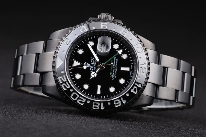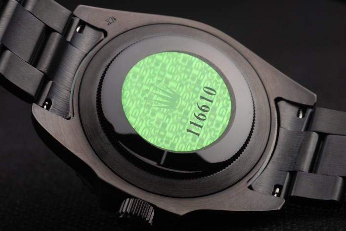 Volver: Ion-plateado caso de empuje de acero inoxidable de nuevo con el verde Rolex logo stamp