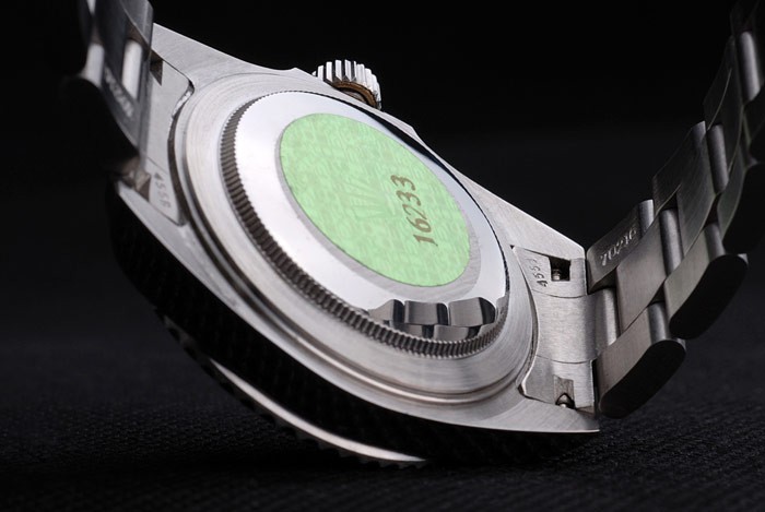 Volver: Acero inoxidable empuje en caso de vuelta con el verde de Rolex grabado stamp