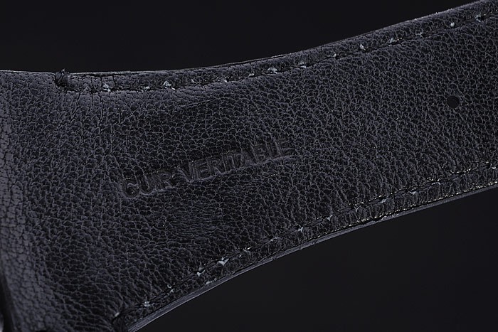 Bracelet de acero inoxidable: correa de cuero Negro con el sello en relieve de calor y el logotipo de Tonino Lamborghini Tonino Lamborghini en relieve y de ion-plateado pliegue grabado -En flip-sobre el gancho clasp