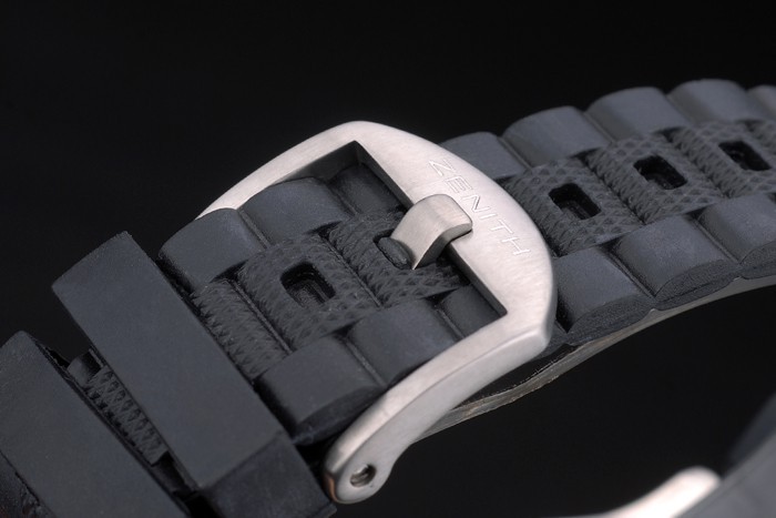 Bracelet acero inoxidable con textura de goma negro brazalete de eslabones con cierre de hebilla de gancho y ‘Zenith’ inscription